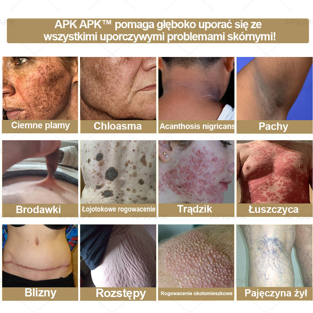 Jako dermatolog często spotykam się z pacjentami z różnymi problemami skórnymi i z przyjemnością polecam APKAPK™ Skuteczny krem do kompleksowej pielęgnacji skóry, który ma imponującą skuteczność: